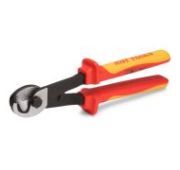 • Для работ под напряжением до 1000 В • Материал рукояток: двухслойная диэлектрическая пластизоль • Внутренний слой (сигнальный) – желтый (светло-красный), внешний слой – красный • Зоны захвата для плоских и круглых деталей • Режущие кромки дополнительно закалены токами высокой частоты. HRC 58...62 • Резка твердой стальной проволоки ? до 1.5 мм • Резка провода O до 6 мм • Материал рабочей части: хром-ванадиевая сталь • Обработка поверхности: матовое никелирование • Вес инструмента: 238 г • Длина инструмента: 200 мм