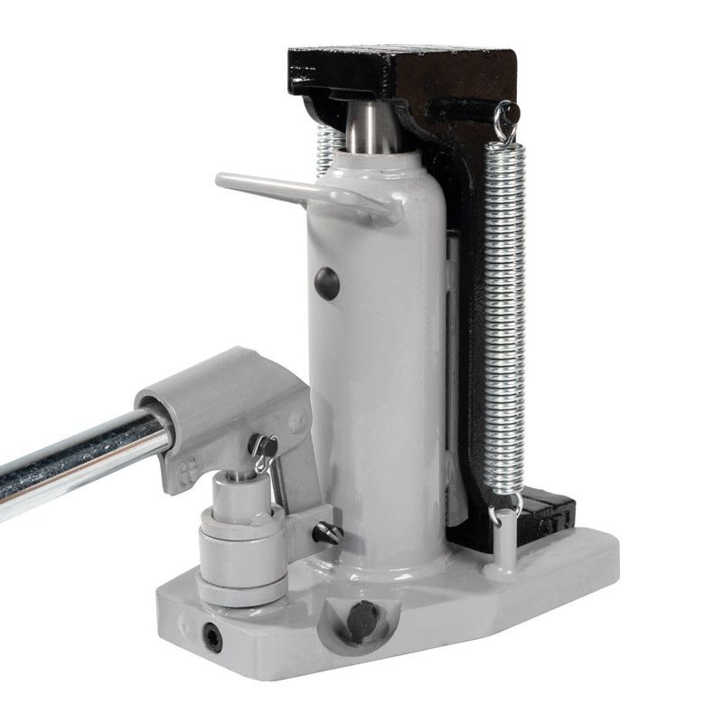 • Предназначен для поднятия, позиционирования оборудования, тяжелых металлических конструкций, подпорки тяжело нагруженных каркасов и других грузов, а также при ремонтных, монтажно-демонтажных, сборочных и транспортно-складских операциях • В комплекте: • домкрат грузовой ДА-ПН • разборная рукоятка • ремкомплект (уплотнительные кольца) • Грузоподъемность: • на верхней опоре: 5 тонн • на лапе: 2.5 тонны • Ход штока: 105 мм • Минимальная высота подхвата: 20 мм • Максимальная высота подъема на лапе: 125 мм • Максимальная высота подъема на опоре: 335 мм • Объем масла: 110 мл • Материал: легированная сталь 40Х • Максимальное давление: 700 бар (70 МПа) • Рабочая жидкость: масло всесезонное гидравлическое ВМГЗ • Диапазон рабочих температур: -15...+50°C • Встроенный гидравлический насос • Пружинный возврат штока • Прочная цельнометаллическая или сварная опора • Рифленые поверхности опоры и лапы предотвращают скольжение груза • Износостойкое покрытие корпуса защищает от коррозии и внешних воздействий • Поворотный механизм плунжера позволяет работать в ограниченном пространстве • Встроенный насос со съемной рукояткой обеспечивает мобильность и удобство в работе • Рукоятка для переноски домкрата • Вес домкрата: 8.4 кг • Размер упаковки: 270?210?320 мм