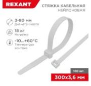 Хомут кабельный 3.6х300 нейл. бел. (уп.100шт) EKF plc-c-3.6x300