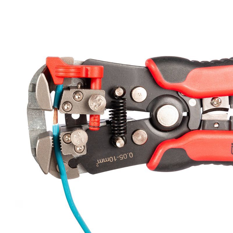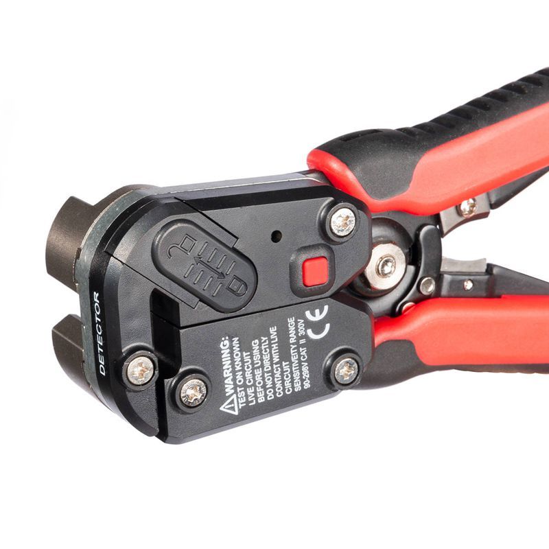• 4 в 1: • снятие изоляции с проводов 0.05–10 мм2 • резка проводов сечением до 10 мм2 • снятие оболочки с плоских проводов ВВГ-П, ПУНП (кроме литой оболочки с одновременном заполнением промежутков между жилами) • бесконтактный детектор переменного напряжения 90-230В • В стандартном диапазоне 0.2–6 мм2 автоматическая настройка на нужный размер и толщину изоляции проводов • В микродиапазоне проводов от 0.05 мм2 и для сечения 10 мм2 используется винт микронастройки • Встроенный бесконтактный детектор для определения наличия напряжения в сети 90-230В расположен под задней крышкой механизма и работает от двух батареек LR44 • Кнопка включения/выключения детектора напряжения • Звуковая и световая индикация при работе детектора • Снятие изоляции с моножильных и многопроволочных жил без повреждения проводника • Усиленные прижимные губки с шириной захвата 13 мм • Окно для сброса обрезков изоляции, благодаря которому снятая изоляция не застревает в механизме • Одновременная зачистка нескольких проводов за одно движение, благодаря широким прижимным губкам • Встроенный модуль «CutPro» для резки проводов. Профессиональные лезвия из нержавеющей стали вместо заточенного участка на металлическом корпусе правой рукоятки в моделях WS-04А/ 04В и WS-07 • Ширина режущих лезвий модели WS-15 на 3 мм больше, чем в WS-14 • Две направляющие, предохраняющие инструмент от разбалтывания и лезвия для резки от перекоса • Эргономичные двухкомпонентные рукоятки с прорезиненными вставками из нескользящего материала • Вес: 360 г • Длина: 205 мм