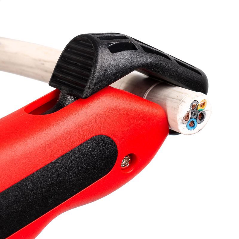 • Предназначен для снятия изоляции с круглых кабелей и проводов ? 8–28 мм • Регулируемая длина ножа: толщина снимаемой изоляции до 3.5 мм • Встроенный в рукоятку регулятор глубины реза • Подпружиненная скоба для фиксации инструмента на кабеле • Автоматически поворачивающийся нож при изменении направления реза • Продольные и поперечные разрезы изоляции • Корпус эргономичной формы из качественного пластика • Компактность и минимальный вес • Вес: 135 г • Длина: 135 мм