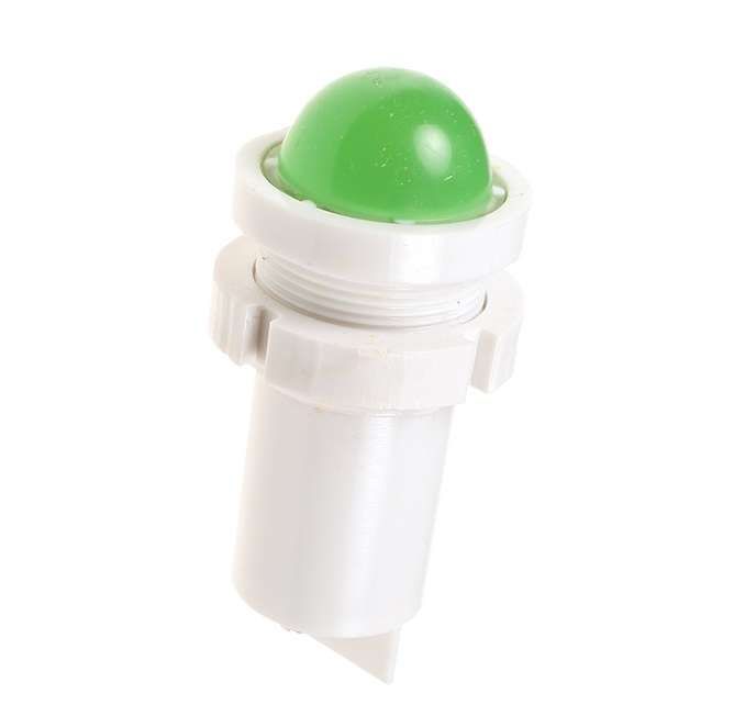 Лампа СКЛ 14А-Л-2-220 – арматура светосигнальная. Представляет собой индикаторную лампу нормальной яркости (15 МКД), со встроенным светодиодом, высокой плоской, рассеивающей свет, окрашенной линзой зеленого цвета, корпусом и кольцом из пластика. IP54. Биполярная (переменный ток произвольной частоты и формы или постоянный ток любого направления). Является аналогами импортной светосигнальной арматуры (Schneider Electric, ABB и проч.) с установочным диаметром 22 мм. Предназначена для установки на панелях электрощитов, пультов и прочего электрооборудования. Крепление к панели винтовое.
