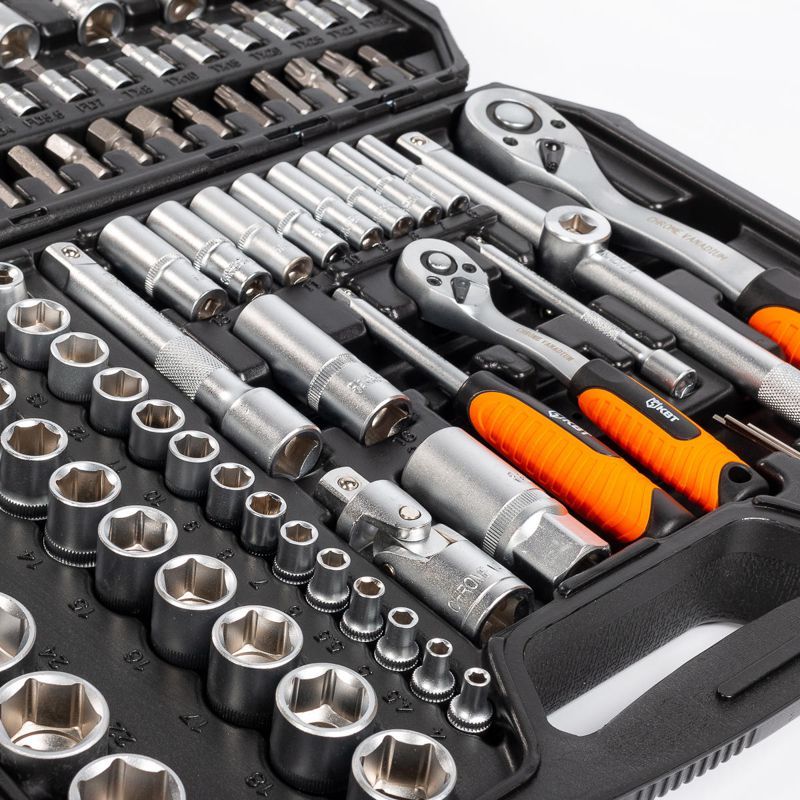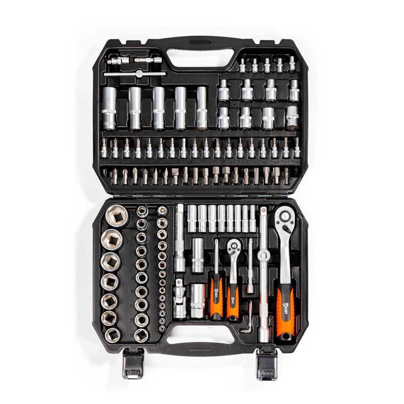 • Набор инструмента из 110 предметов для проведения авторемонтных, слесарных и сантехнических работ • Состав набора: • КОМПЛЕКТ 1/2" • Головки торцевые шестигранные: 10; 11; 12; 13; 14; 15; 16; 17; 18; 19; 20; 21; 22; 24; 27; 30; 32 мм • Головки торцевые удлиненные: 14; 15; 17; 19; 22 мм • Головки торцевые Е-типа: Е10; Е11; Е12; Е14; Е16; Е18; Е20; Е24 • Головки свечные: 16; 21 мм • Универсальный шарнир • Ключ-трещотка, 72 зубца • Удлинитель: 125; 250 мм • Адаптер для удлинителя 3/8? (F) х 1/2? (М) • Обойма-держатель для бит • Биты 30 мм: Т40, Т45, Т50, Т55, Т60 / PH: 3; 4 / PZ: 3; 4 / FD: 8; 10; 12 / HEX: 7; 8; 10; 12; 14 мм • КОМПЛЕКТ 1/4" • Головки торцевые шестигранные: 4; 4.5; 5; 5.5; 6; 7; 8; 9; 10; 11; 12; 13; 14 мм • Головки торцевые удлиненные: 6; 7; 8; 9; 10; 11; 12; 13 мм • Головки торцевые Е-типа: Е4; Е5; Е6; Е7; Е8 • Ключ-трещотка, 72 зубца • Вороток Т-образный 115 мм • Универсальный шарнир • Удлинитель: 50; 100 мм • Вороток отвертка • Адаптер для бит 30 мм • Биты 30 мм: Т8; Т10; Т15; Т20; Т25; Т30 / PH: 1; 2 / PZ: 1; 2 / FD: 4; 4.5; 5; 7/ HEX: 3; 4; 5; 6 мм • Ключи торцевые шестигранные: 1.27; 1.5; 2; 2.5 мм • Пластиковый кейс • Материал торцевых головок: хром-ванадиевая сталь • Покрытие: матовое никелирование • Габариты кейса: 395х300х95 мм • Вес набора: 7.0 кг