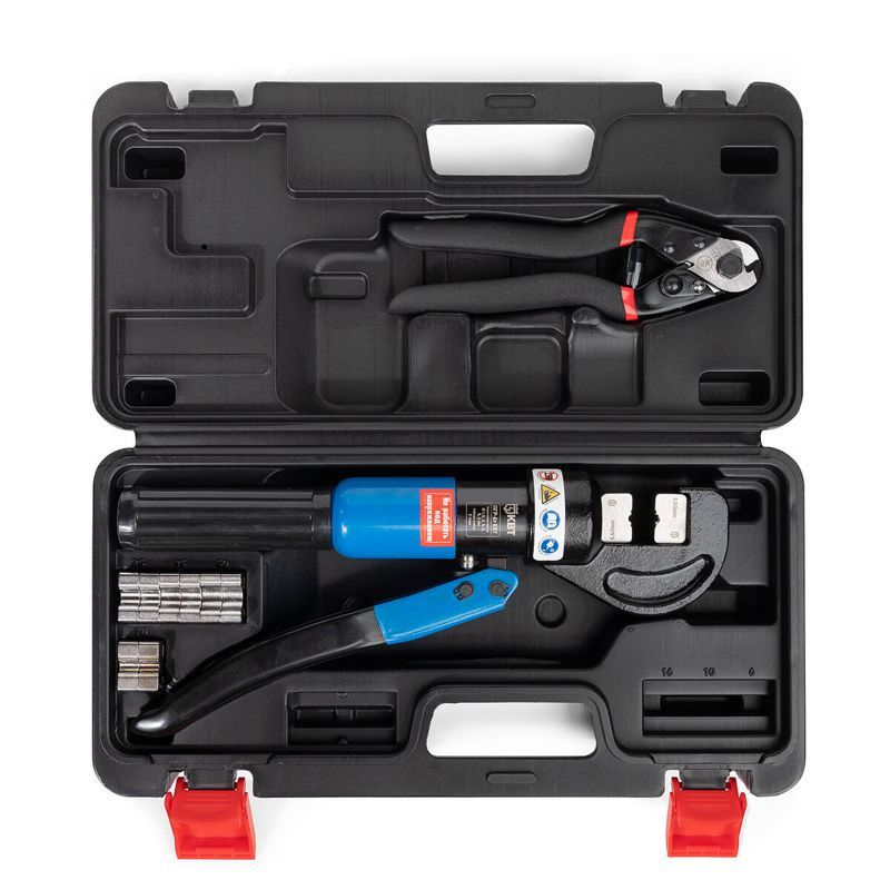 • Комплект предназначен для опрессовки и резки стальных тросов • В комплекте: • ручной гидравлический пресс ПГР-6т • набор из 5 сменных матриц с круглым профилем • тросорез ТРК-5 • ремкомплект (уплотнительные кольца) • прочный пластиковый кейс • Размеры опрессовываемых тросов: 1.5/2/3/4/5/6 мм • Резка стальных тросов O до 5 мм • C-образная кованая рабочая голова • Безлюфтовые матрицы с фиксирующими штифтами • Клапан ручного сброса давления • Кованая голова придает инструменту особую прочность и надежность • Максимальное усилие: 5 т • Всесезонное гидравлическое масло ВМГЗ гарантирует работу инструмента при температуре не ниже -15 °С • Вес комплекта/инструмента: 2.9/1.7 кг • Длина инструмента: 295 мм • Габариты кейса: 350х180х80 мм