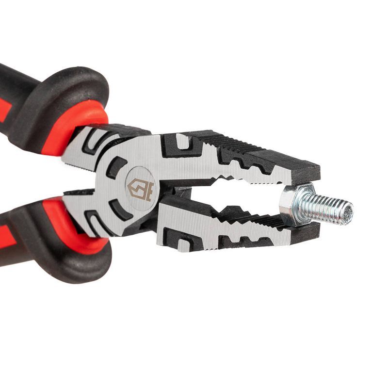 • Для работ под напряжением до 1000 В • Зоны захвата для плоских и круглых деталей • Режущие кромки дополнительно закалены токами высокой частоты. HRC 58...62 • Резка твердой стальной проволоки ? до 2 мм • Резка провода O до 11 мм • Материал рабочей части: хром-ванадиевая сталь • Обработка поверхности: воронение/лакировка • Экономия усилия при резке и захвате до 35% по сравнению с обычными пассатижами • Оптимальная конструкция шарнирного механизма обеспечивает минимальные усилия в работе • Двухцветные многокомпонентные рукоятки с упорами для защиты от соскальзывания • Вес инструмента: 320 г • Длина инструмента: 200 мм