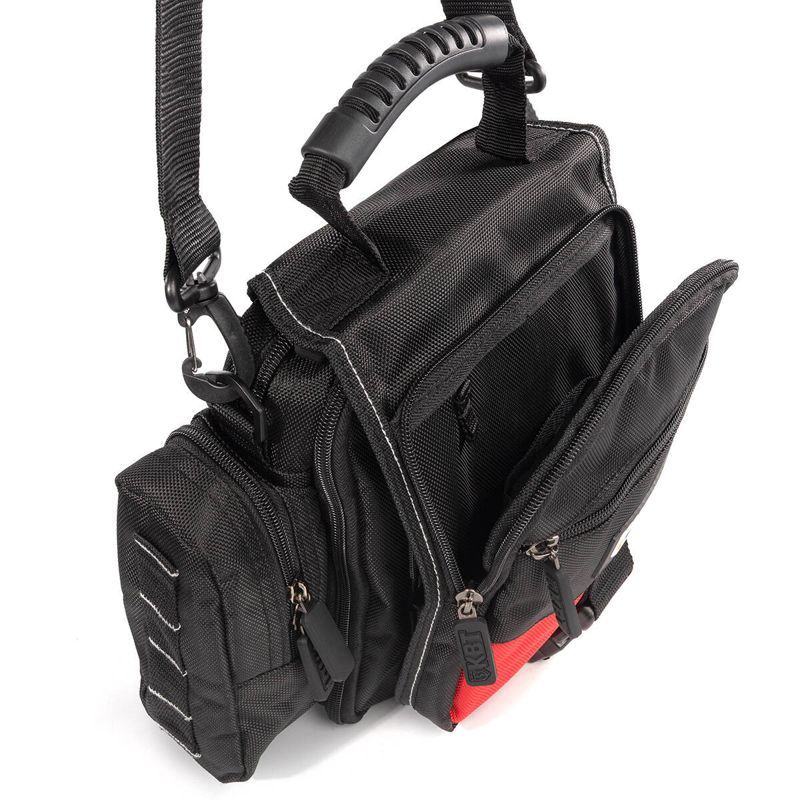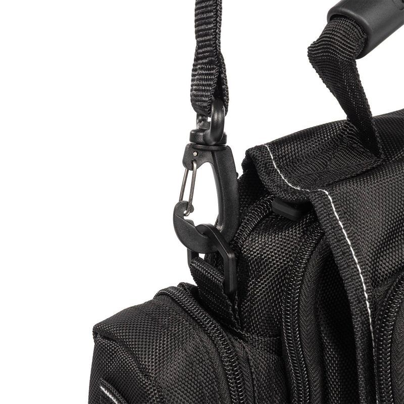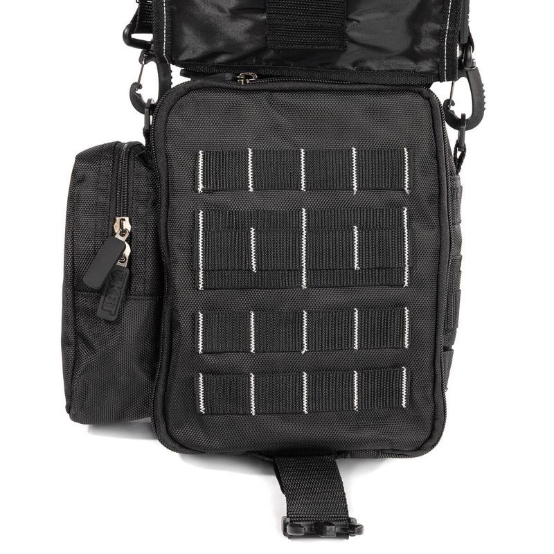 • Компактная сумка монтажника • Материал: влагозащитный полиэстер 1680D Оксфорд WR PVC (610 г/м2) • Лицевая часть ткани покрыта пропиткой WR (water resistence), изнаночная часть PVC (поливинилхлоридом), что обеспечивает водонепроницаемость и водоотталкивающие свойства • Конструкция: • 1 основное отделение с 2 секциями на молнии: • большая секция с 5 карманами и одним карманом на молнии • вторая секция с 7 небольшими карманами • 1 боковое отделение на молнии с 1 маленьким карманом • откидной клапан с 2 наружными карманами на молнии и 1 внутренним карманом • большой карман с липучкой на задней части сумки • Лямка для крепления сумки на поясе • Ремень с мягким наплечником и пластиковыми карабинами • Сумка выдерживает вес до 8 кг • Объем сумки: 5.5 л • Вес: 0.78 кг • Габариты (ДхГхВ, мм): 240х70х300