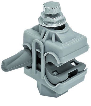 • НАЗНАЧЕНИЕ N 640 предназначен для ответвления от ВЛН к вводу в здание СИП сечением 2x16-4x25, а также для ответвления от неизолированной несущей нулевой жилы • ОБЛАСТЬ ПРИМЕНЕНИЯ Применяются для обеспечения электрического контакта магистрального и абонентских ответвлений • ПРИНЦИП ДЕЙСТВИЯ Электрический контакт осуществляется прокалыванием изоляции жил проводов ответвления. Контроль над усилием затяжки болта осуществляется применением срывной головки. Контактные пластины выполнены из алюминиевого сплава, предназначены для соединения алюминиевых проводов. Контакты со стороны ответвления покрыты смазкой. Корпуса зажимов серого цвета, что позволяет исключить ошибку по применению. Контактные пластины выполнены со стороны магистрали в виде плашки, чтобы не уменьшать механическую прочность провода.